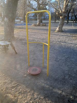 参考 - こども複合遊具の一部 (ブランコだったもののよう。写真は問い合わせフォームでいただいたもの。2023.03.14)