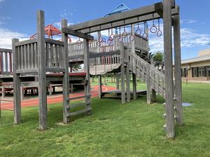雲梯 - こども複合遊具の一部 (250, 日都産業, 吊り輪型, 写真は問い合わせフォームでいただいたもの。2022.08.09)