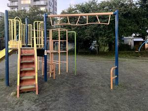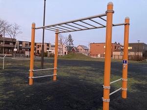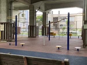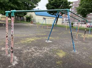 雲梯 - こども複合遊具の一部 (163-200, 雲梯のようなもの。吊り輪 163cm、横棒 200cm。写真は問い合わせフォームでいただいたもの。2021.12.10)