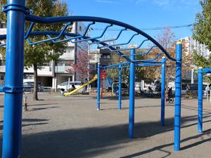「新田緑道」には「ペア懸垂」があったらしいのだけど、それは見つけられなかった。広範囲に工事中だったので、作り変えているのかもしれない。