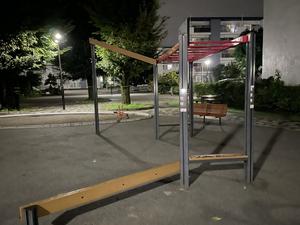 懸垂平行棒 - 日都産業 (撮ったときは使用禁止だったが、その後 2022.04.23 に通ったときは使用可能になってた。 2022.02.23)