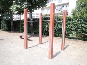 全身のびのびうんどう (しばらく使用不可になっていて、2022.03頃に復活したと思ったら、高い方のバーが封印されてしまってた。市に問い合わせると復旧予定なしとのこと。写真 2022.05.04)