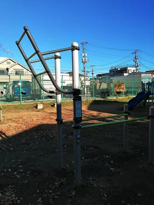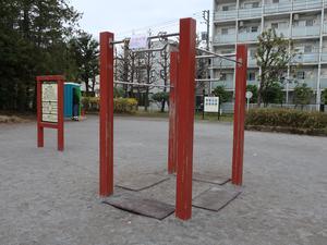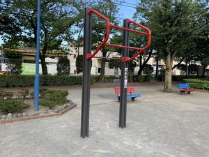 通りからぱっと見だと見つからないが、奥に続く道を行くと真ん中にマルチトレーナーだけが設置された部屋がある、という感じの、ゲーム感ある配置の公園・・。