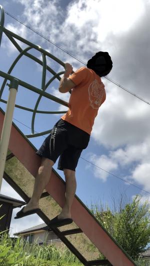ヒコーキ型の遊具。ジャングルジムに分類されるようです。翼のところが懸垂できる高さでした。