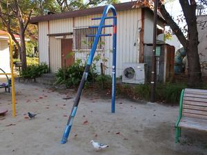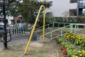 懸垂平行棒/ラムダ と 高鉄棒/多効能鍛錬器 は少し離れた位置にある