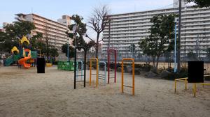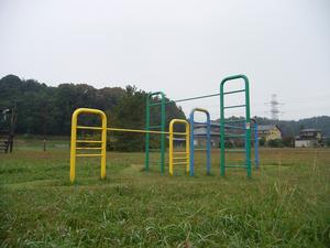 東西は柵と参道で区切られていて、いったん通りに出ないと行き来できない。肋木鉄棒は東側