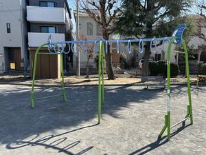 「新田緑道」には「ペア懸垂」があったらしいのだけど、それは見つけられなかった。広範囲に工事中だったので、作り変えているのかもしれない。