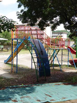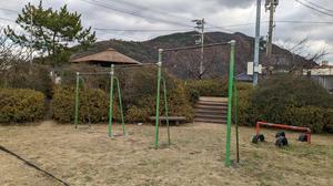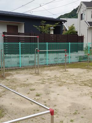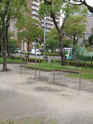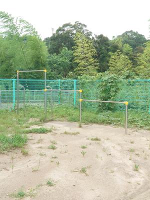 高鉄棒と雲梯は離れた位置にある (間に並木があり互いに見えない)