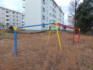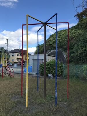 市民センターの敷地内。もう1方の遊具とは柵で区切られた位置にあるのでピンは2箇所に分けて登録した