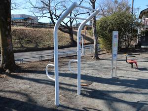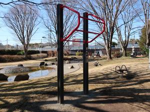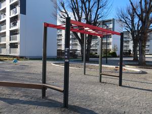 懸垂平行棒 - 日都産業 (撮ったときは使用禁止だったが、その後 2022.04.23 に通ったときは使用可能になってた。 2022.02.23)