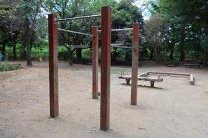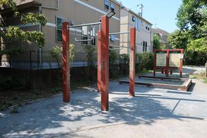 全身のびのびうんどう (しばらく使用不可になっていて、2022.03頃に復活したと思ったら、高い方のバーが封印されてしまってた。市に問い合わせると復旧予定なしとのこと。写真 2022.05.04)