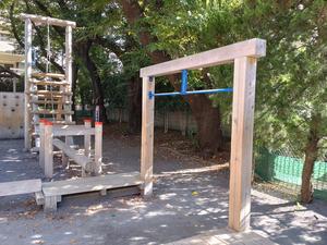 大人用遊具がある公園では、こども複合遊具は載せないようにしていたのだが、この公園のはかっこよかったので思わず載せた。