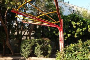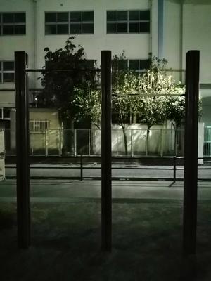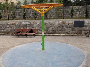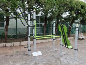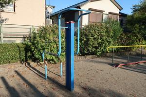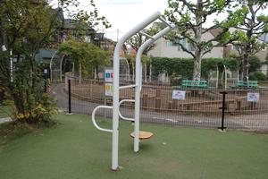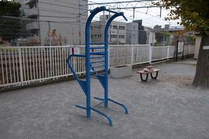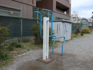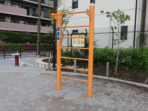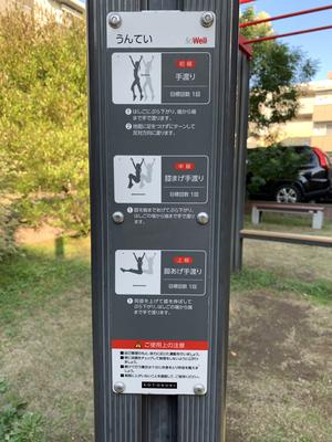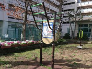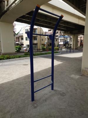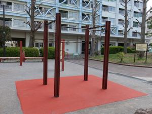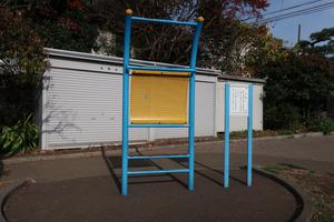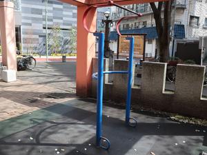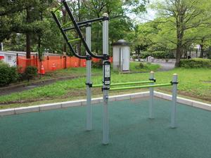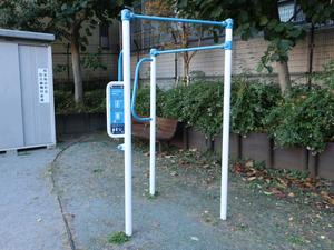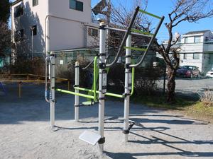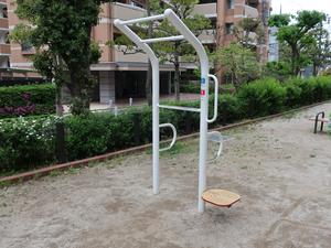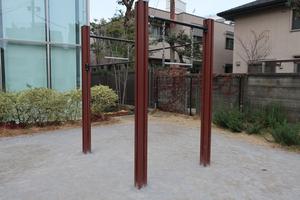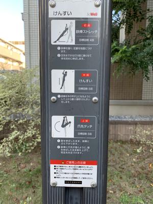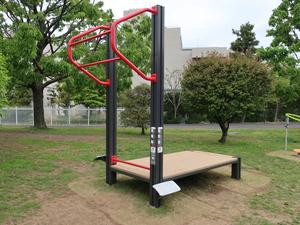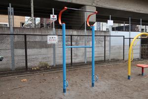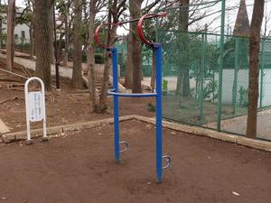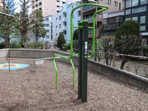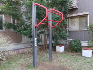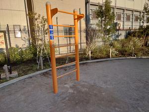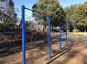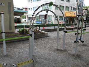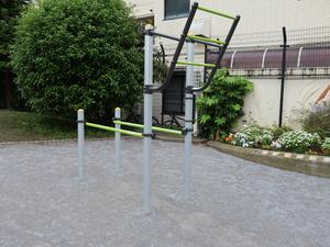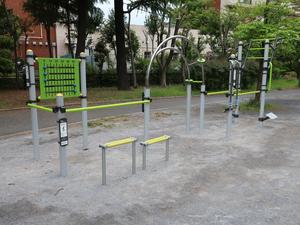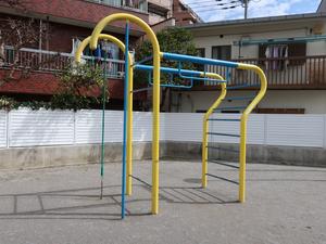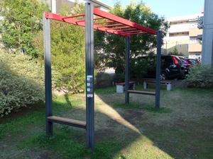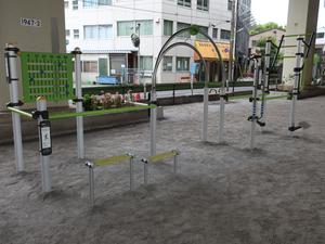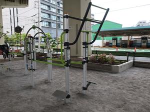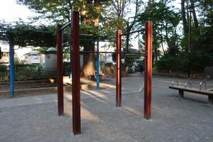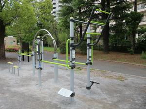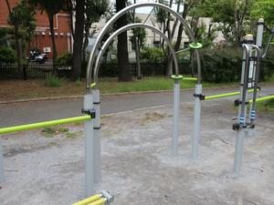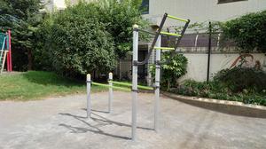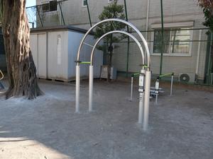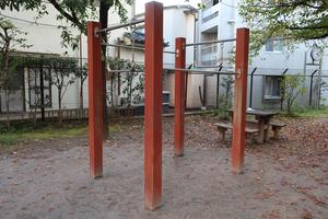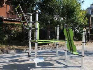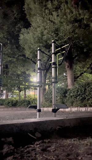 通りからぱっと見だと見つからないが、奥に続く道を行くと真ん中にマルチトレーナーだけが設置された部屋がある、という感じの、ゲーム感ある配置の公園・・。