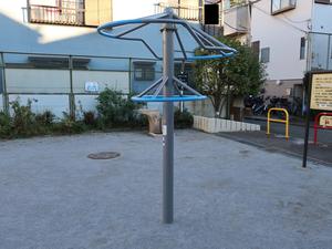 歩いていたら見つけた。公園名は見つからないが、これはマンション内の施設なのだろうか。ほかに、かまどベンチと思われるベンチも設置されている。