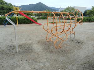 雲梯 - こども複合遊具の一部 (吊り輪式。写真は問い合わせフォームでいただいたもの。2023.08.28)