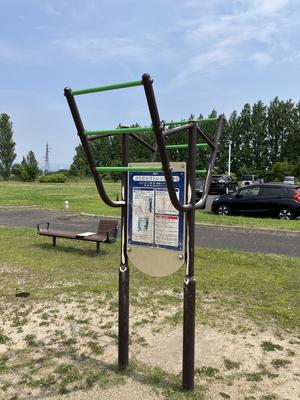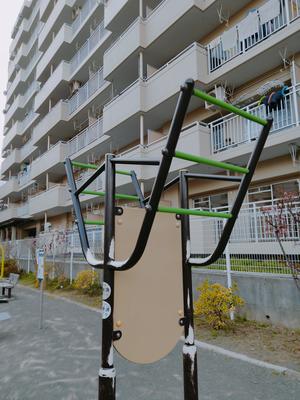 健康遊具は複数設置されているが、懸垂可はこれのみ。