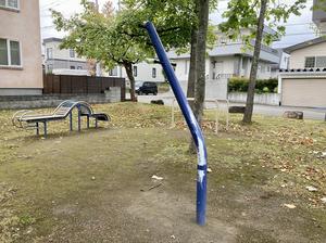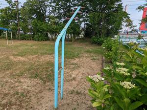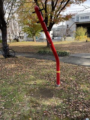 「ラムダ」と同じ用途で、ぶらさがりまたは脚上げ腹筋のようなことをするものと思います。ラムダと同様、頭をぶつけないように注意が必要です。 似た遊具で支柱が斜めにまっすぐのものはニシオカの「アストレ ケンスイ」