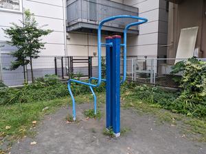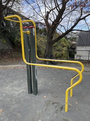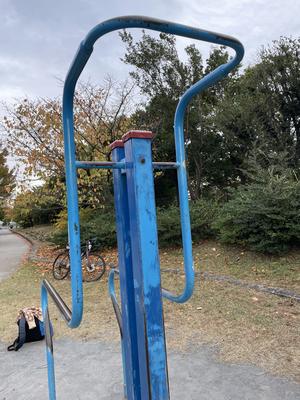 パラレルハンガー - 日都産業 (に似た遊具かも。写真は問い合わせフォームでいただいたもの。2022.04.28)