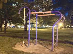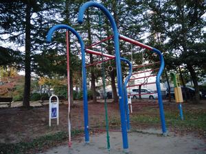 通りからぱっと見だと見つからないが、奥に続く道を行くと真ん中にマルチトレーナーだけが設置された部屋がある、という感じの、ゲーム感ある配置の公園・・。