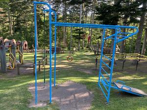 吊り輪と懸垂バー、登り棒/綱 のついた遊具です。トレーニングステーション同様、最初いまいちどういう使い方をするものなのか想像つきませんでした。