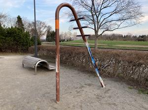 懸垂平行棒/ラムダ と 高鉄棒/多効能鍛錬器 は少し離れた位置にある