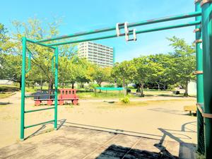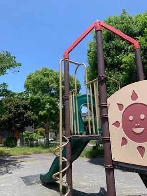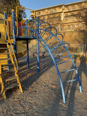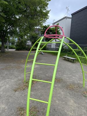 雲梯ではないが、ぶら下がれそうなところのある複合遊具を載せています。