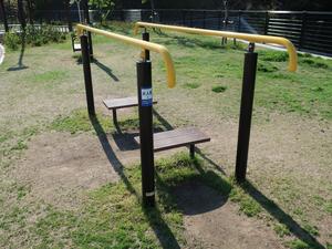 平行棒は、もちろん懸垂できる高さではないのですが、懸垂をやるひとは「ディップスもやりたい」という声をよく聞きますので、いちおう見つけたら登録しています。